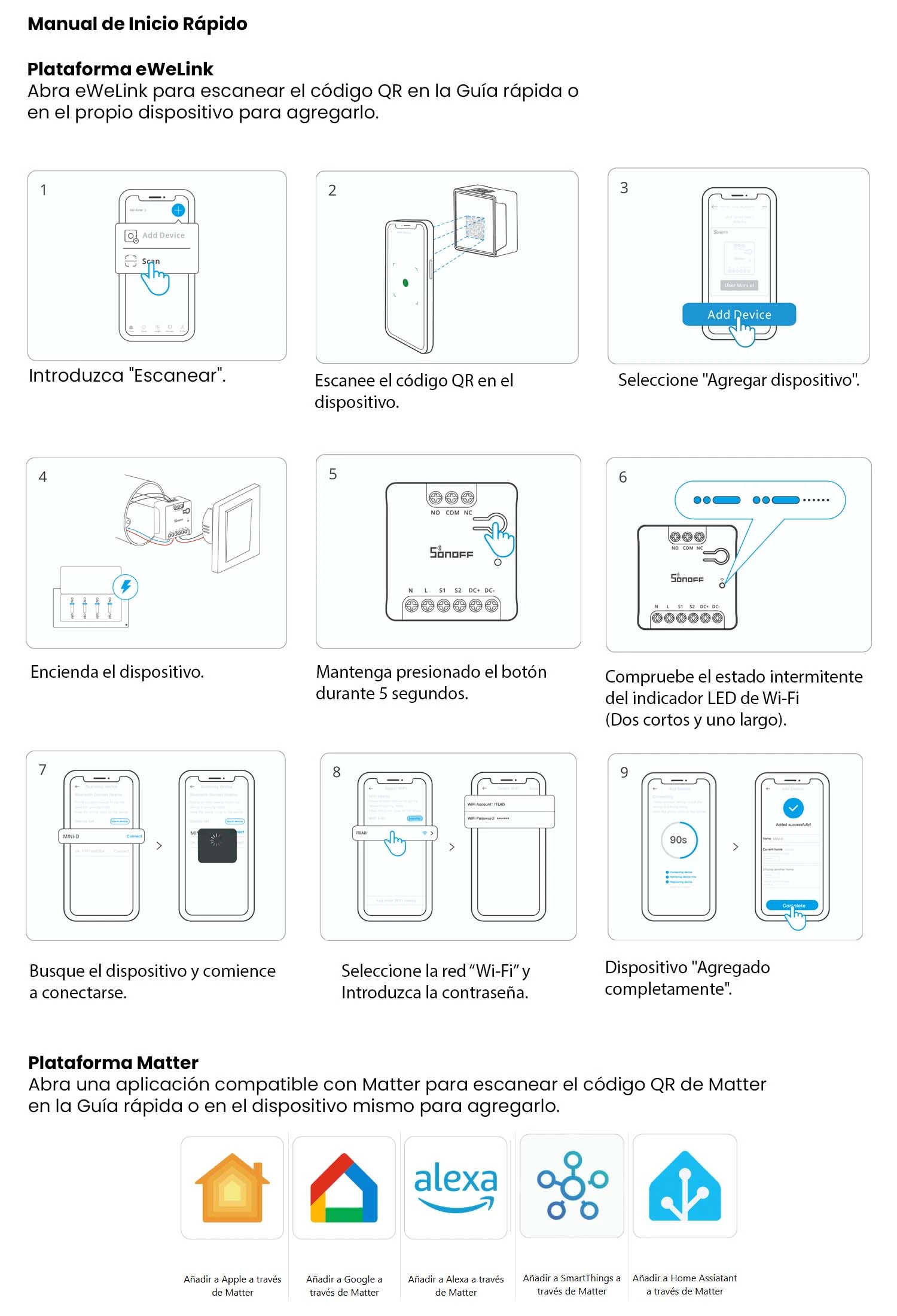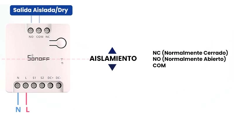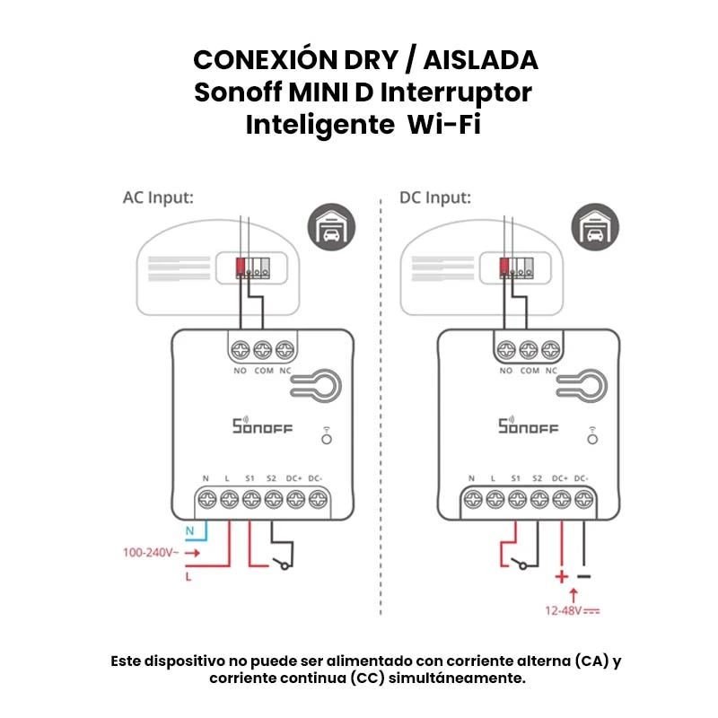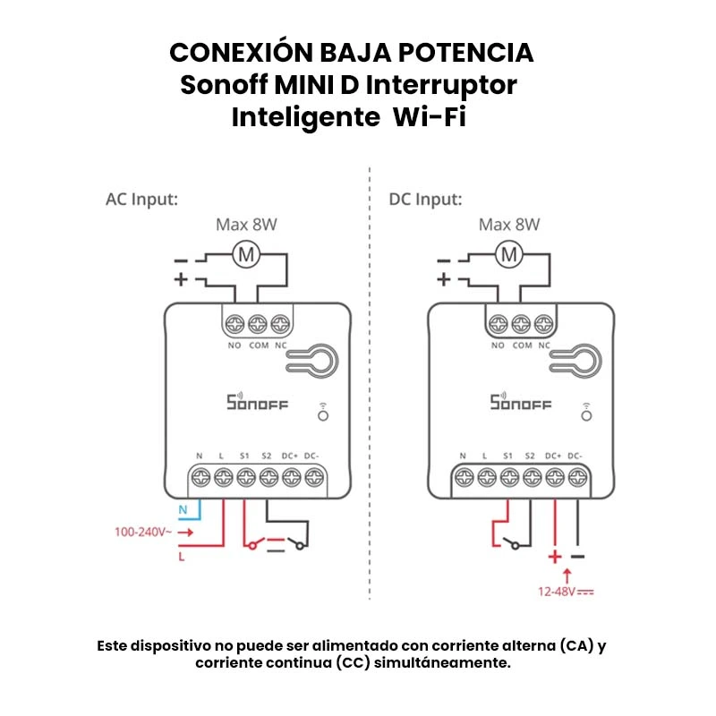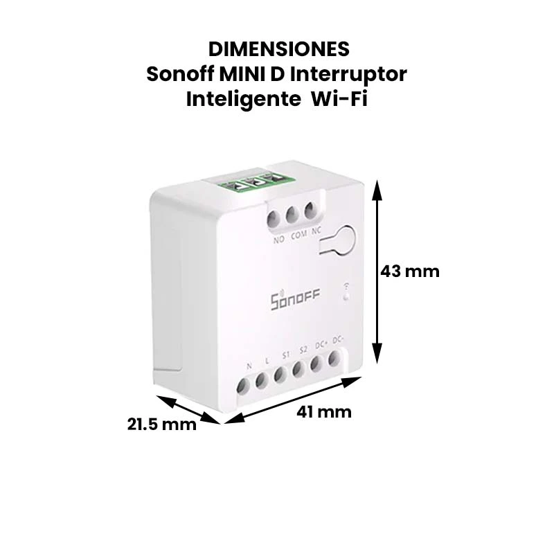 El Sonoff MINI-D es un interruptor inteligente con Wi-Fi con la capacidad de conectar dispositivos en AC (100–240 V) o DC (12V–48 V), ya que el SONOFF MINI-D cuenta con una salida de contacto aislado (Dry), diseñado para una integración perfecta con plataformas compatibles con Matter como: Amazon Alexa, Google Home, Apple Home, Home Assistant.