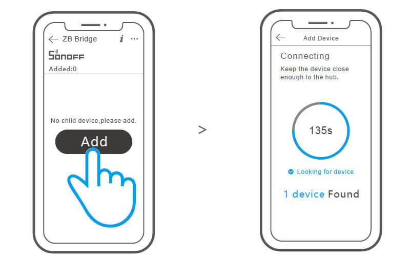 - En la página principal de Zigbee de la aplicación eWeLink, haga clic en “Agregar” y espere para que se complete el proceso.