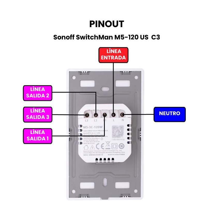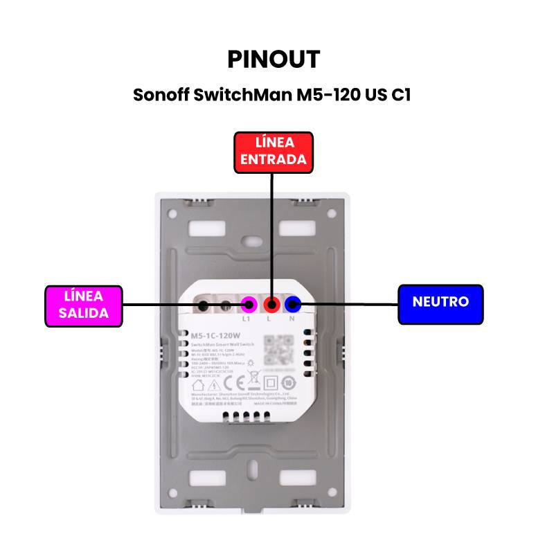 El Sonoff SwitchMan M5-120 es un interruptor inteligente de pared diseñado para controlar dispositivos eléctricos, está disponible para: 1, 2 y 3 canales. Este dispositivo permite la gestión remota a través de una aplicación móvil, brindando la posibilidad de encender o apagar las luces o aparatos conectados desde cualquier lugar con acceso a Internet. Además, es compatible con asistentes de voz como Google Assistant y Amazon Alexa, facilitando el control por comandos de voz.