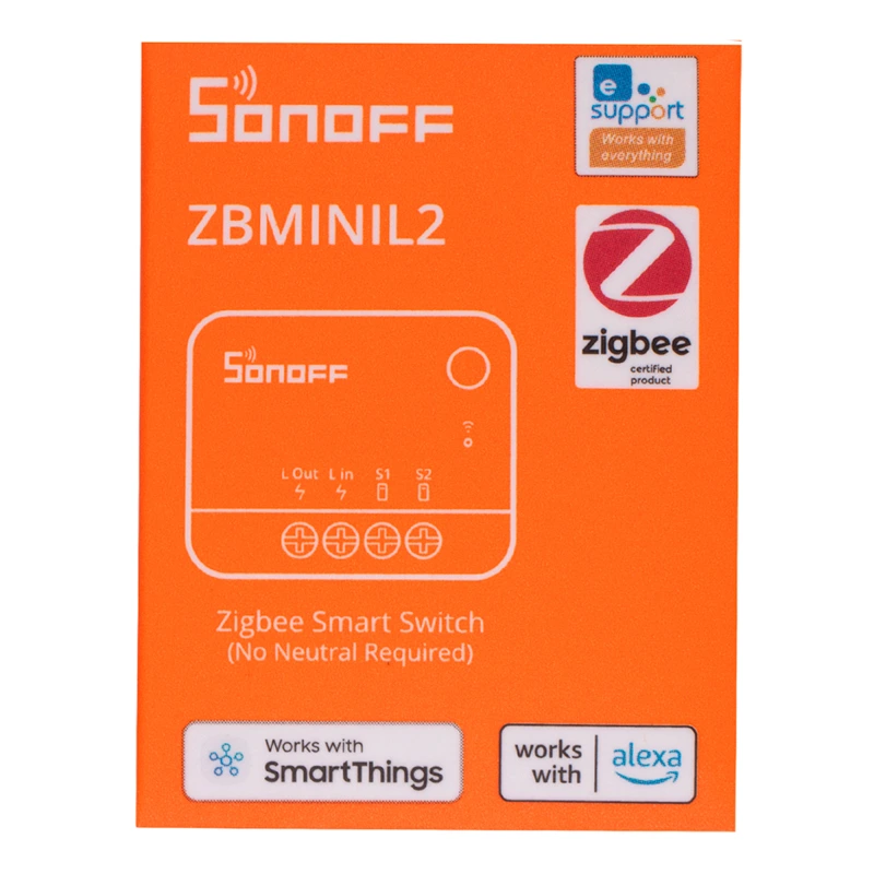 Sonoff ZBMINIL2 Interruptor Extreme es un dispositivo para automatizar apagadores de pared comunes del hogar u oficina para tener control de iluminación y otros dispositivos eléctricos de forma remota a través de una red Zigbee. Este interruptor está diseñado para funcionar en instalaciones eléctricas sin el cable neutro, lo que lo hace compatible con una amplia gama de configuraciones de cableado, además tiene un tamaño muy compacto lo que le permite colocarse fácilmente en una caja o chalupa de montaje.