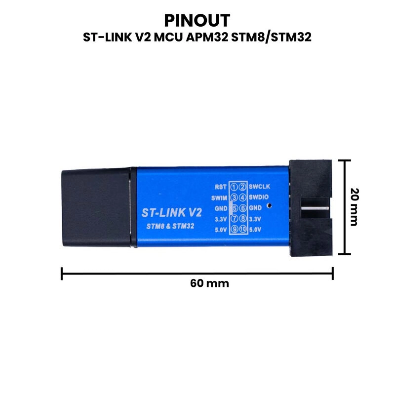 El ST-LINK V2 MCU APM32 STM8/STM32 es un programador y depurador de hardware diseñado para dispositivos basados en microcontroladores STM8 y STM32 de STMicroelectronics. Permite cargar programas y depurar aplicaciones en estos microcontroladores, facilitando el desarrollo y la prueba de firmware.
