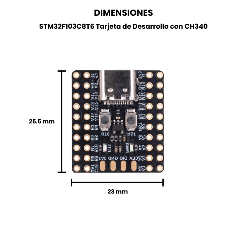 La STM32F103C8T6 Tarjeta de Desarrollo con CH340 es una placa basada en un microcontrolador ARM Cortex-M3 de 32 bits, conocida por su buen equilibrio entre rendimiento y bajo consumo. Incorpora el chip CH340 como convertidor USB-a-serial, lo que facilita la programación y comunicación con la PC sin hardware adicional. Nota: No incluye headers