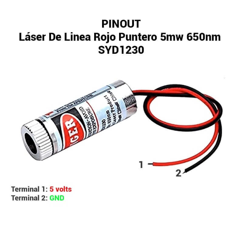 El láser SYD1230 es un módulo emisor de luz de grado industrial que proyecta un haz de luz roja en forma de cruz. El módulo láser es de color rojo y cuenta con una longitud de onda de 650 nm y una potencia de 5 mW. Funciona con un voltaje de entre 4.5 V y 5 V.