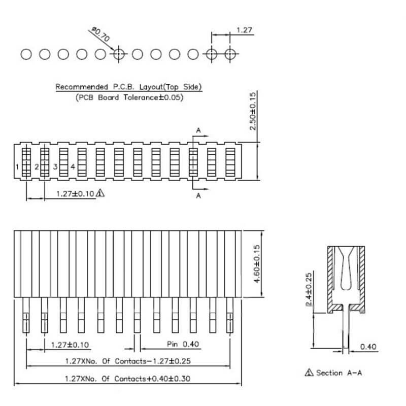 Tira Hembra Header 1.27 mm disponibles en 6, 8, 10, 20 y 40 pines, ideales para proyectos en PCB y/o repuestos en donde el espacio sea un factor importante. Para más disponibilidad de header encuentra otros Aquí.