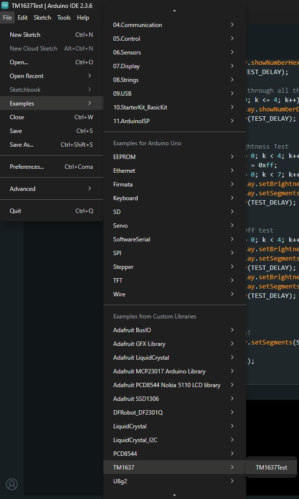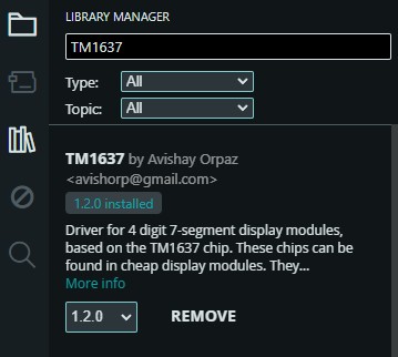 Ya que es un display que funciona con Arduino, desde el IDE de Arduino se puede descargar la librería del TM1637 en la biblioteca.