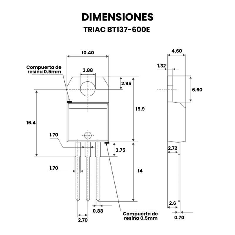 BT137-600E es ideal para aplicaciones como regulación de calor, inicio de inducción de motores o para controlar la fase en dimmers o controladores de velocidad de motor entre muchas otras.