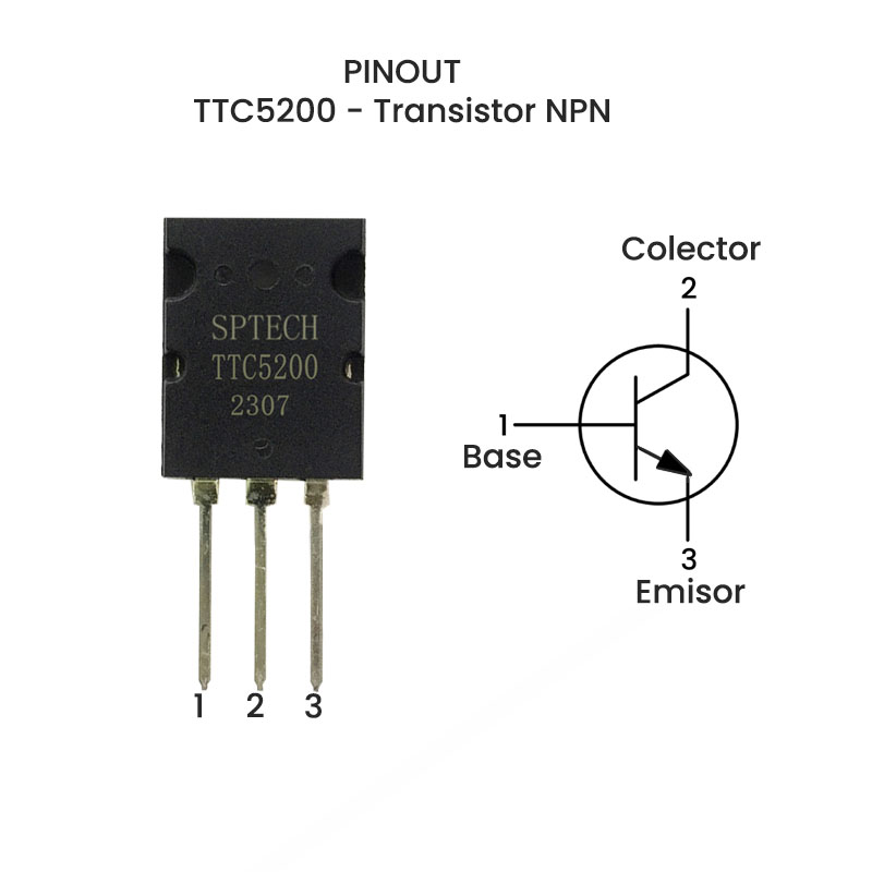 El TTC5200 Transistor NPN esta diseñado para amplificación de alta potencia , cuenta con un voltaje colector-emisor mínimo de 230V a una corriente máxima de colector 15A .En conjunto con su complemento PNP, el TTA1943, se utiliza en configuraciones push-pull o en amplificadores complementarios de audio para mejorar la calidad y rendimiento del sonido.