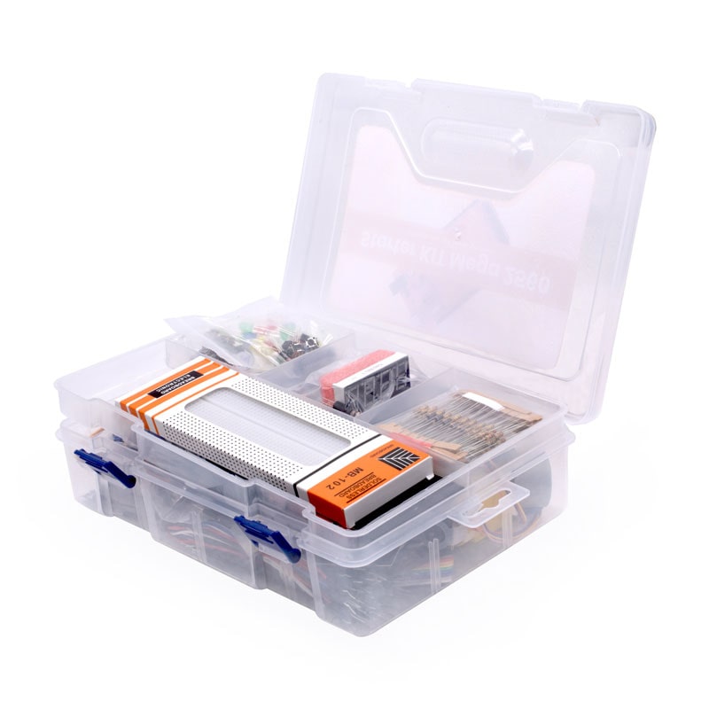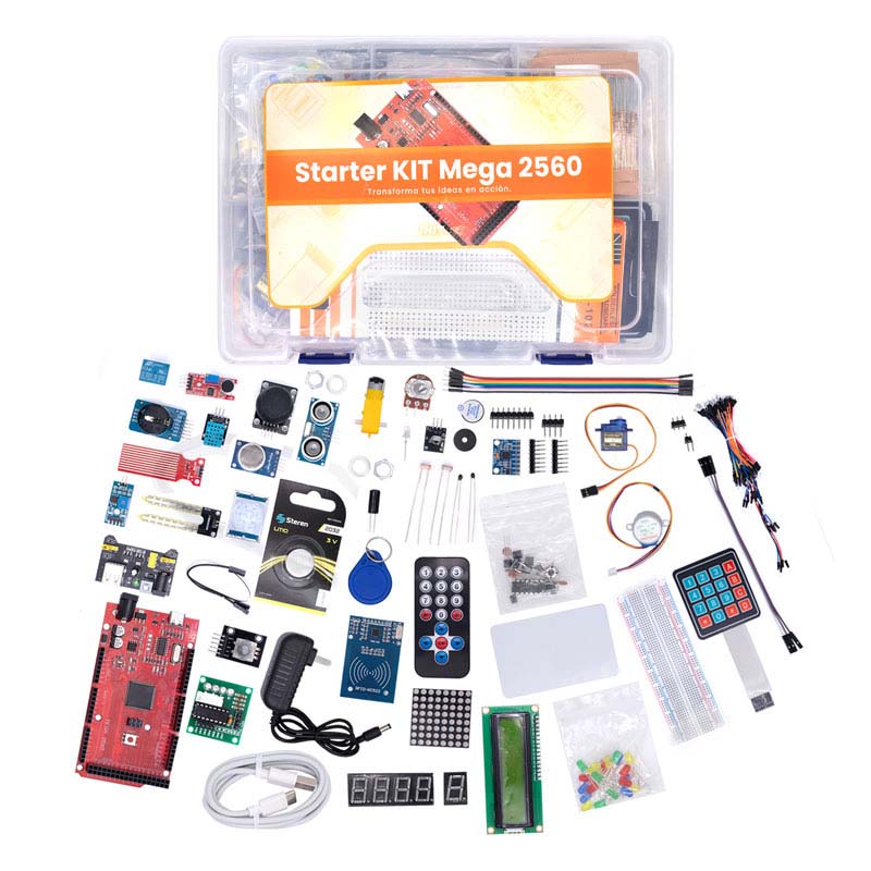 El Unit Kit Mega 2560 es un kit de electrónica enfocado a desarrollar más de 30 prácticas en el entorno Arduino IDE con la tarjeta de desarrollo Mega 2560. Contarás con más de 200 componentes electrónicos, entre ellos los siguientes elementos: