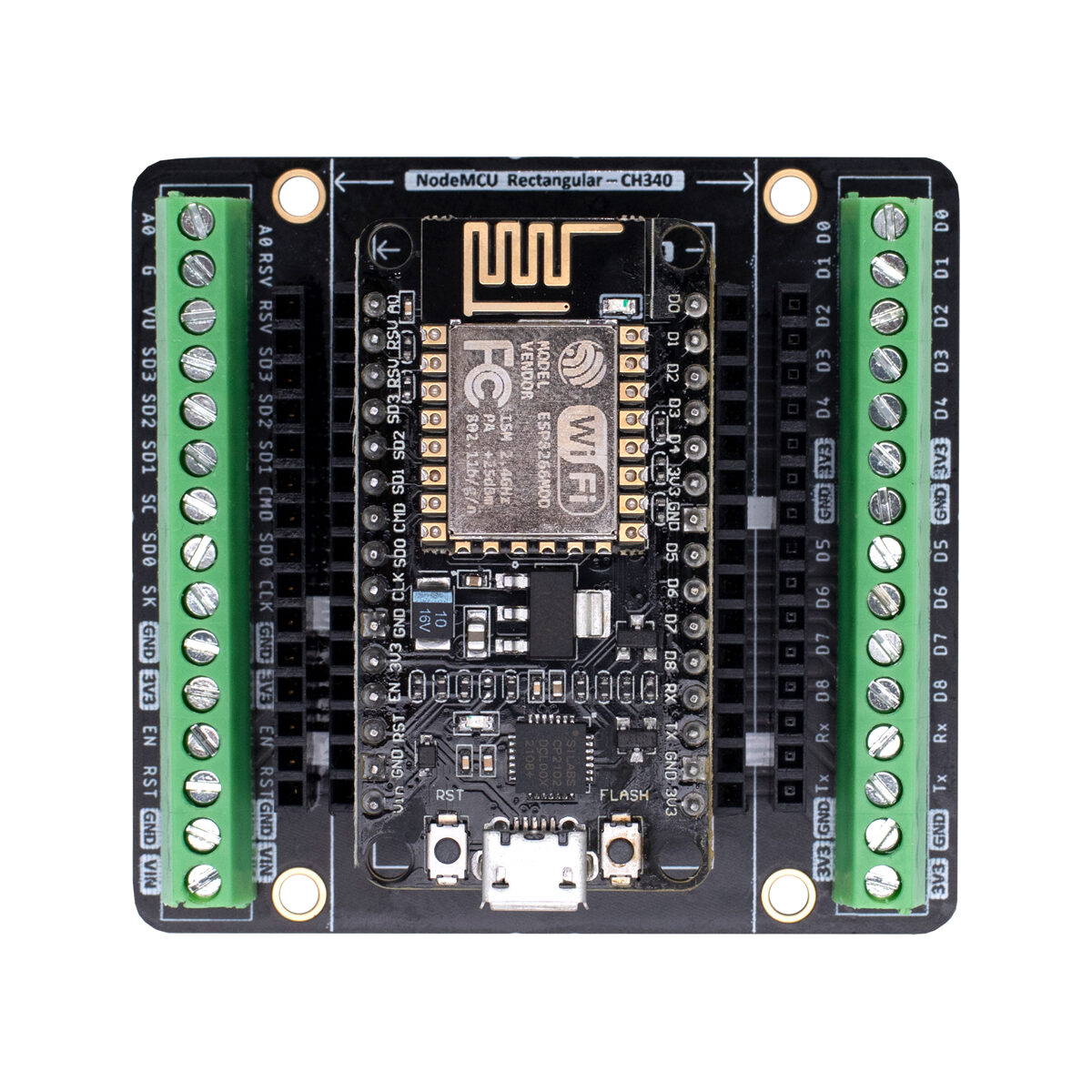 La UNIT Placa de Expansión para NodeMCU ESP8266 es compatible con la versión rectangular y cuadrada. Para poder utilizar ambas versiones necesitas adquirir por separado tiras header hembra para los puertos de la otra tarjeta ESP8266.