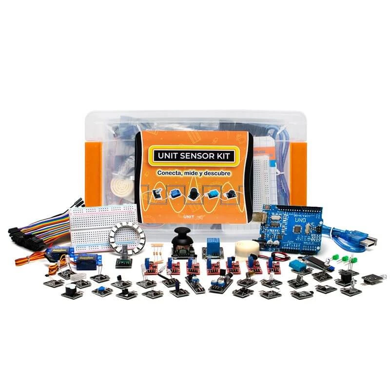 El UNIT Sensor Kit es ideal para desarrollar conceptos como: manejo del IDE Arduino, entradas y salidas digitales/analógicas, respuesta de actuadores e interrupciones, visualización de datos, conexión entre dispositivos o control de sistemas. Diseñado para jóvenes y adultos, este kit es ideal para docentes que deseen que sus alumnos apliquen sus conocimientos previos de programación en la realización de proyectos básicos de electrónica.