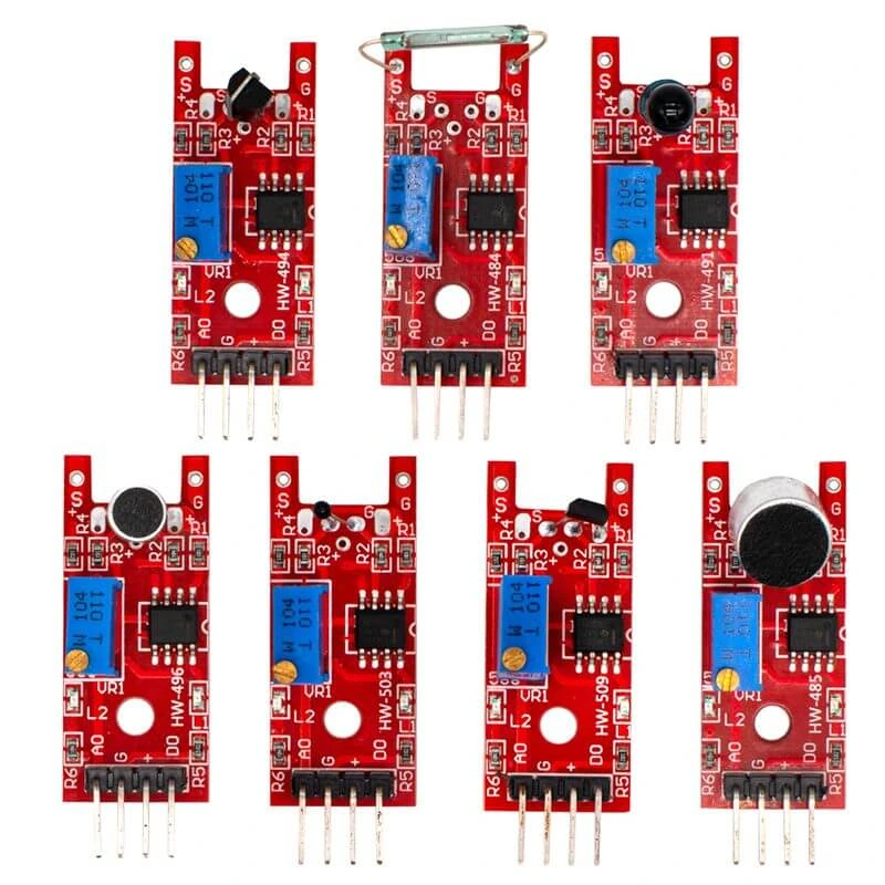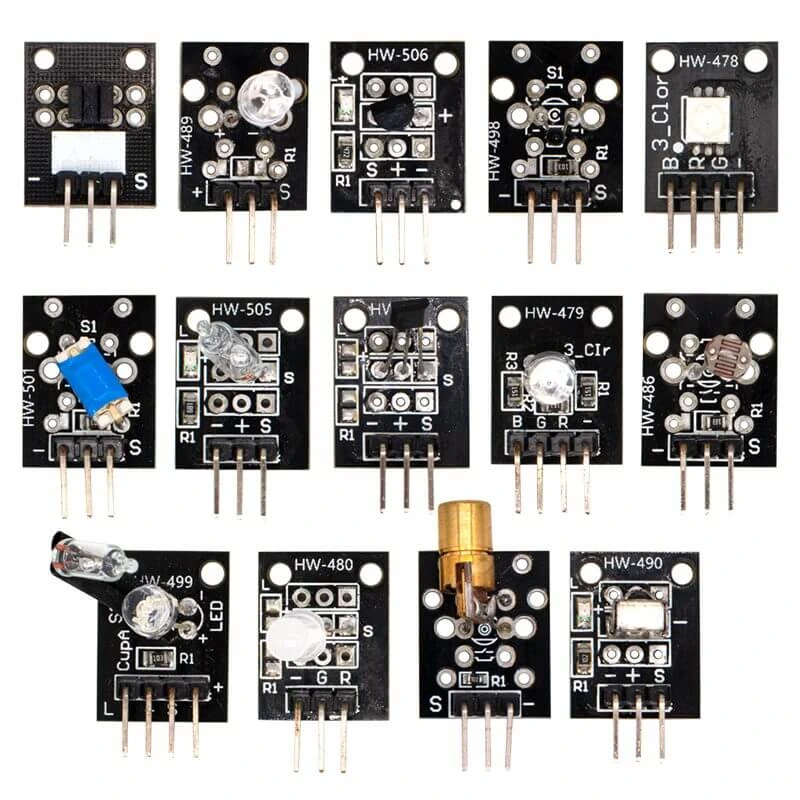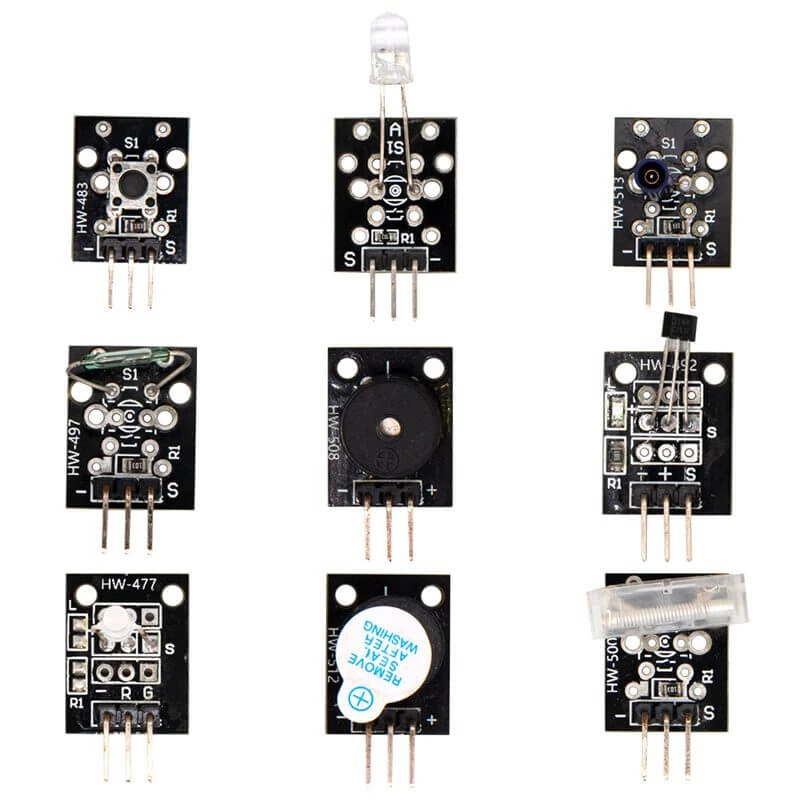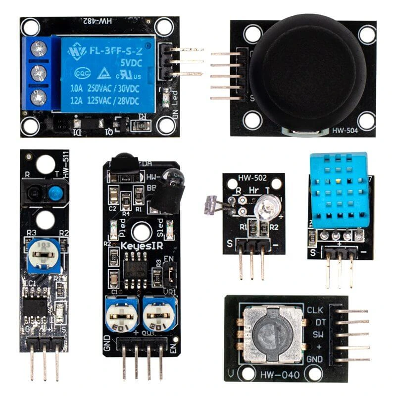 El UNIT Sensor Kit Nivel Intermedio con 20 prácticas te permite realizar proyectos utilizando 37 tipos de sensores para Arduino. El kit incluye los siguientes componentes: