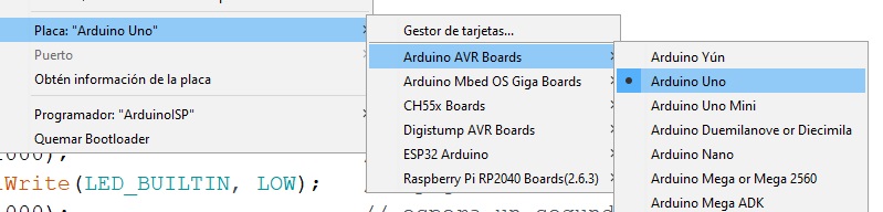 | 5. Ahora da clic en la ventana de Herramientas y selecciona en “Placa” -> Arduino AVR Boards -> Arduino UNO