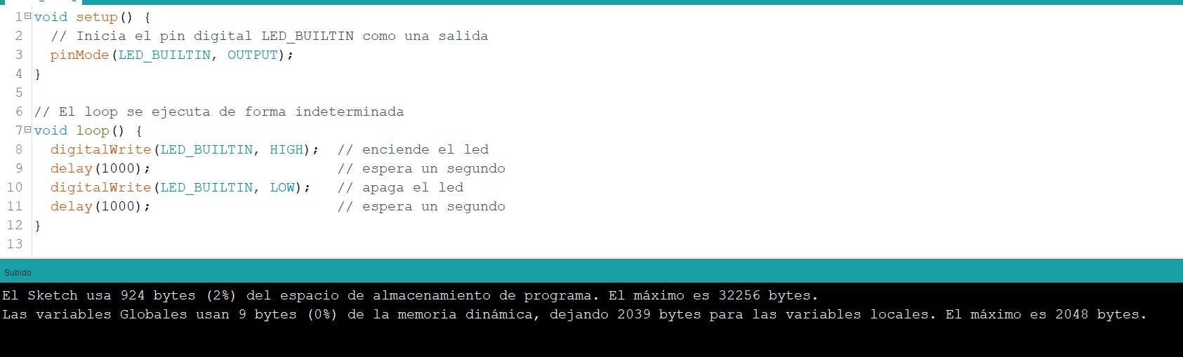 // Inicia el pin digital LED_BUILTIN como una salida