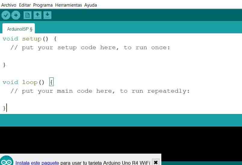 4. A continuación, subiremos un programa simple que hace parpadear el led interno del UNIT UNO para probar que el ensamble de la tarjeta se realizó de forma correcta, para ello inicia el software Arduino (IDE) e ingresa el siguiente código: