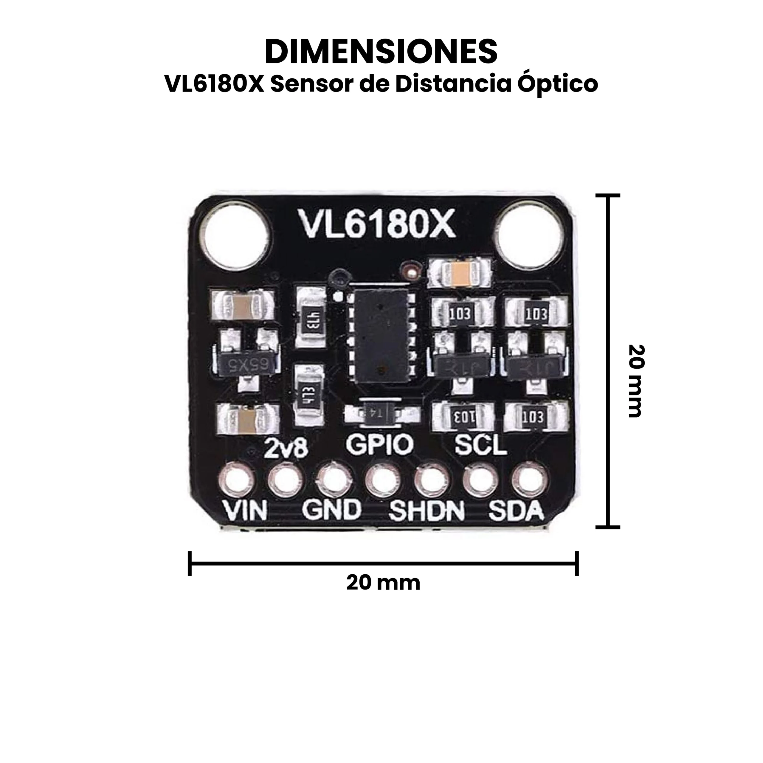 - Dimensiones: 20 mm x 5 mm x 20 mm.
