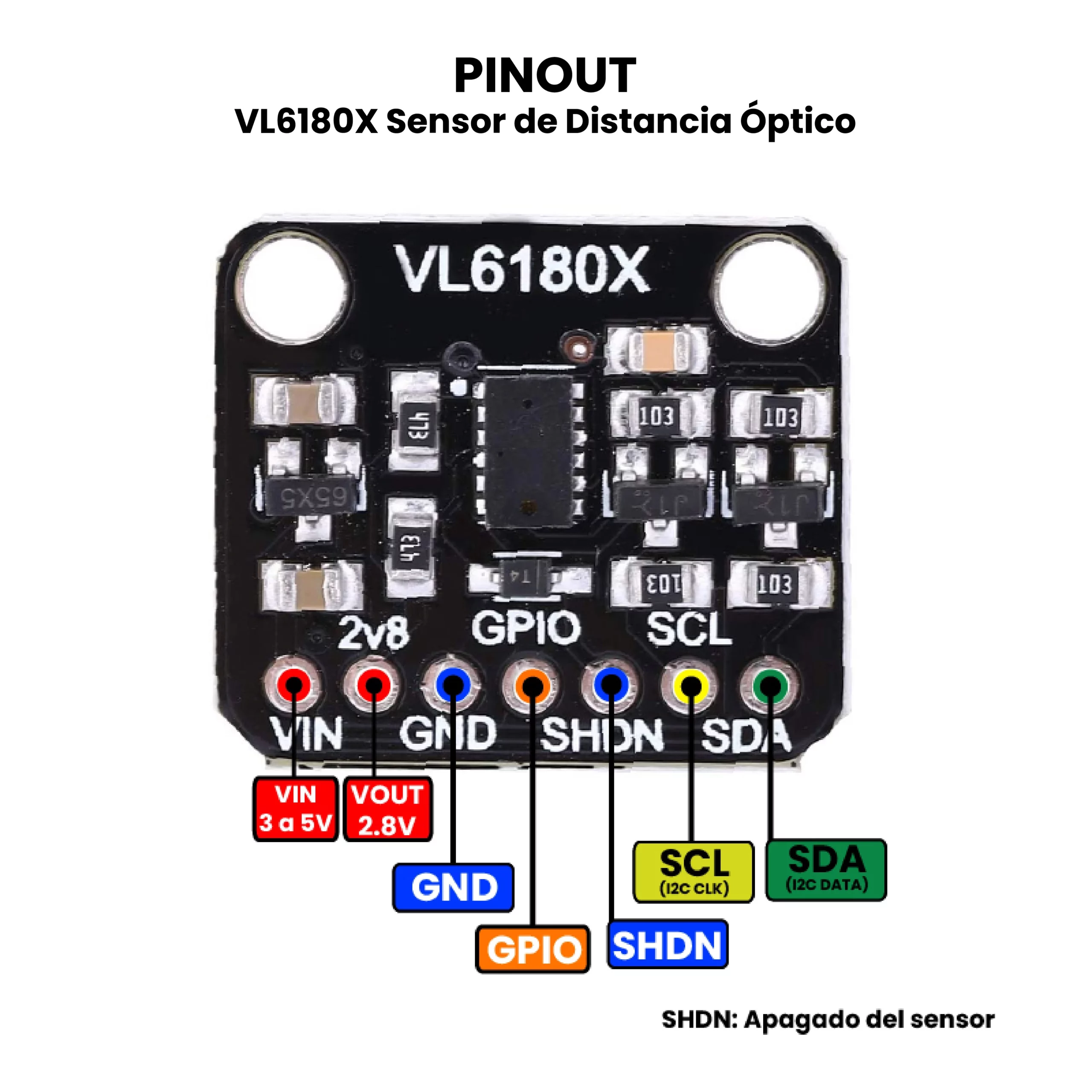 - Dirección I2C por defecto: 0x29 (configurable mediante software).