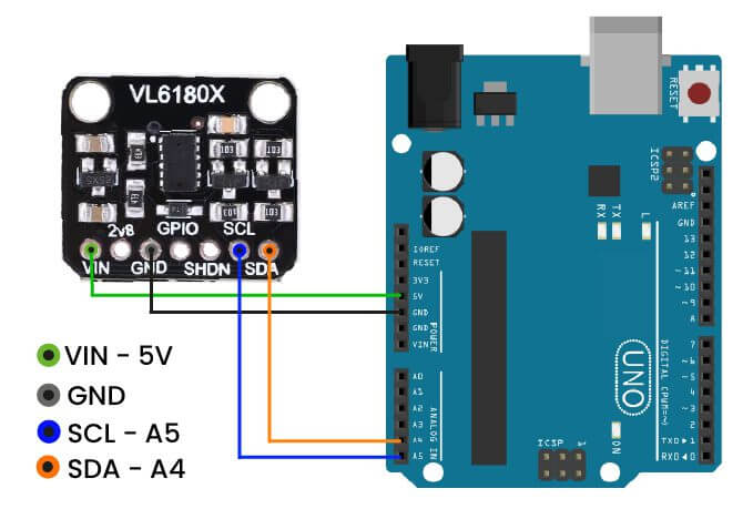 El VL6180 también incluye un sensor de luz ambiental, o ALS, que puede medir la intensidad de la luz con la que se ilumina. Las mediciones de alcance y de luz ambiente están disponibles a través de la interfaz I²C (TWI) del sensor.