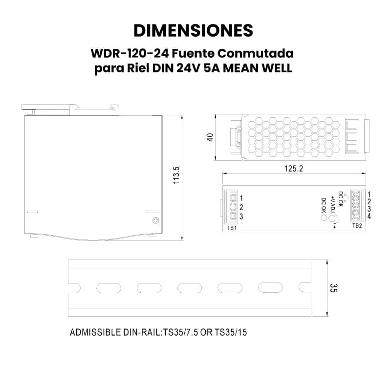 - Montaje: Riel DIN TS-35 / 7.5 o 15 mm