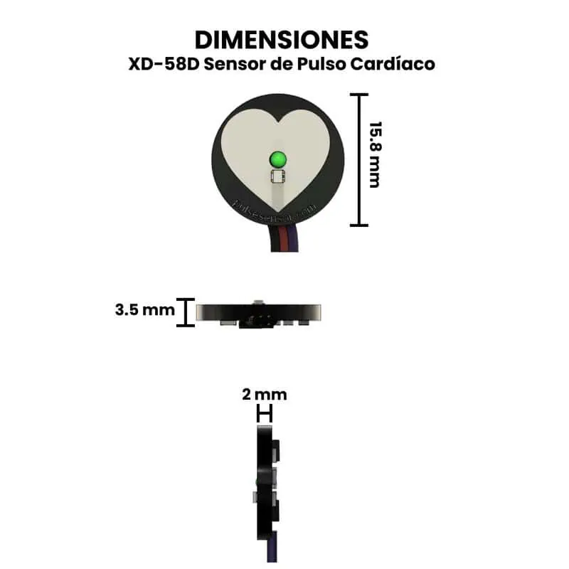 El XD-58D Sensor de Pulso Cardíaco es un módulo electrónico diseñado para medir la frecuencia cardíaca de una persona de forma sencilla y no invasiva. Funciona mediante un sensor óptico que utiliza un LED infrarrojo y un fototransistor: el LED emite luz a través del dedo o lóbulo de la oreja, y el fototransistor detecta los cambios en la intensidad de la luz reflejada por el flujo sanguíneo. Cada pulso del corazón provoca una variación en la cantidad de sangre y, por tanto, en la luz reflejada, lo que el sensor convierte en una señal eléctrica proporcional al ritmo cardíaco. Esta señal puede ser leída por microcontroladores o tarjetas de desarrollo para mostrar las pulsaciones por minuto o graficar la señal del pulso.