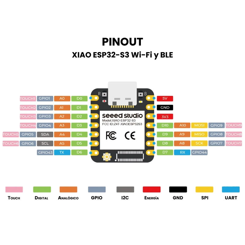 - Modelo: XIAO ESP32-S3 Wi-Fi y BLE