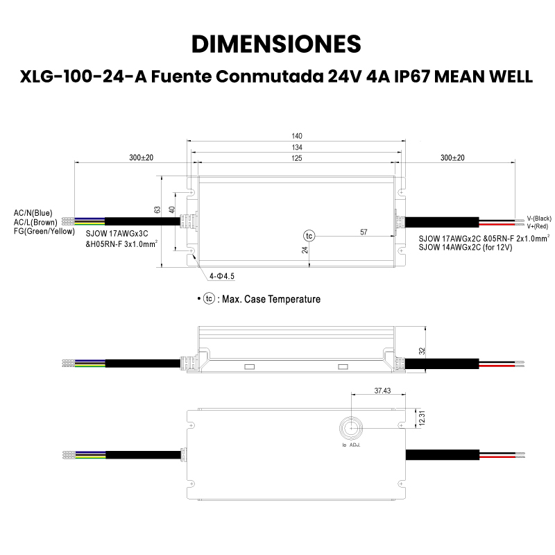 Cuenta con carcasa metálica sellada con protección IP67, lo que permite su instalación en exteriores o ambientes exigentes. Incorpora función de dimming 3 en 1 (0-10V, señal PWM de 10V o resistencia) y ajuste de corriente mediante potenciómetro interno (versión tipo A). Además, integra protecciones contra sobrecorriente, cortocircuito, sobretensión y sobretemperatura, siendo adecuada para luminarias LED en aplicaciones como alumbrado público, industrial y arquitectónico.