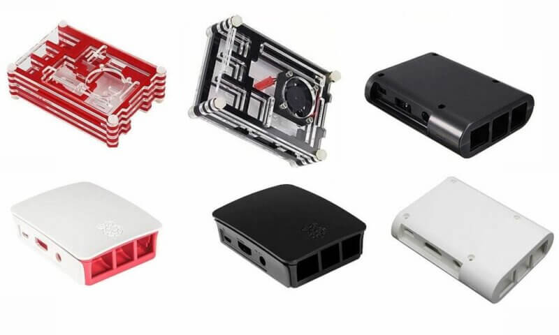 La carcasa o caja de plástico, además de darle un toque estético y elegante, sirve para protegerla de superficies metálicas, Asimismo, cuenta con perforaciones que ayudan a conectar los puertos e interfaces de la Raspberry y algunas ranuras para ventilación.