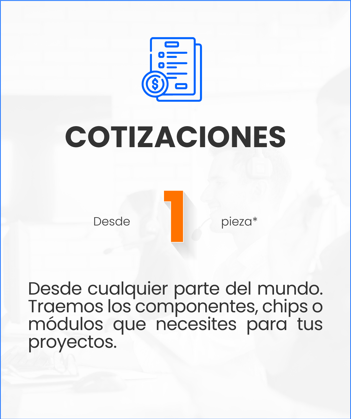 Desde cualquier parte del mundo. Traemos los componentes, chips o módulos que necesites para tu proyecto.